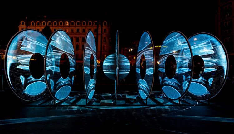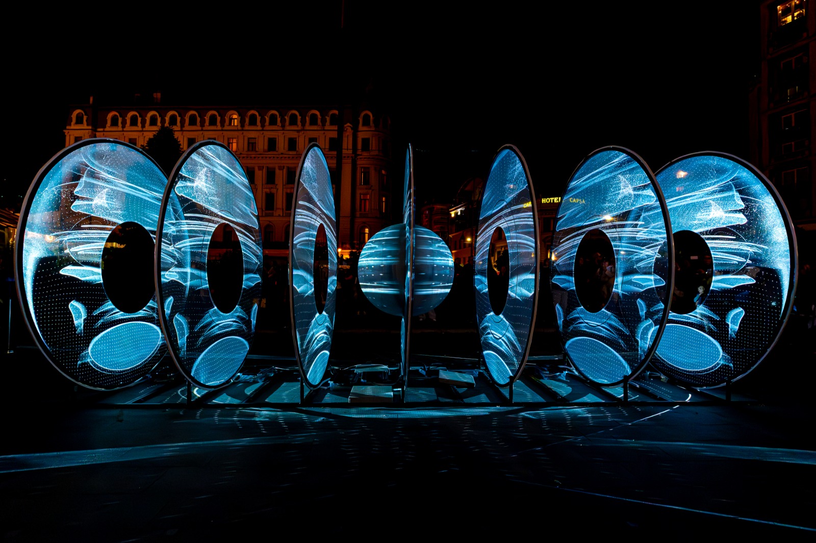 Calea Victoriei a prins viață prin lucrări spectaculoase precum Whale (Aerosculpture, FR) – o balenă luminoasă suspendată în Piața Revoluției, Keyframes (Groupe Laps, FR) – siluete animate care au dansat pe fațada MNAR, Fluxit (Vedel & De Wolf, NL) – o pădure de lumină la Ateneul Român, Energy Pulse (RIZI Studio, RO) – un copac transformat într-un organism de lumină, sau Spider (Groupe Laps, FR) – păianjeni uriași care și-au „țesut” pânza în jurul statuii lui Carol I. De asemenea, instalații ca Odonata (Number 8, FR) – libelule gigantice luminoase, Hulahoop (Collectif Scale, FR) – dansuri geometrice hipnotice, sau video mapping-urile celor de la Mindscape, Les Ateliers Nomad, H3, Noiselopp și Vali Chincișan, pe cele mai emblematice clădiri de pe Calea Victoriei, au completat un traseu vizual spectaculos.