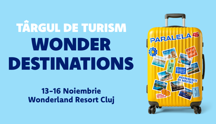 Paralela 45 participă la Wonder Destinations, cel mai amplu târg de turism din România, cu oferte atractive pentru vacanțe cu zboruri charter din vestul țării spre Turcia, Grecia, Spania, Italia, Cipru, Egipt, Tunisia, dar și circuite realizate pe zborurile charter către Turcia din orașele Cluj-Napoca, Oradea, Târgu Mureș, Baia Mare, cu reduceri cumulate de Early Booking, promoții de târg și un bonus de 40 de euro/rezervare sub forma de voucher valoric.