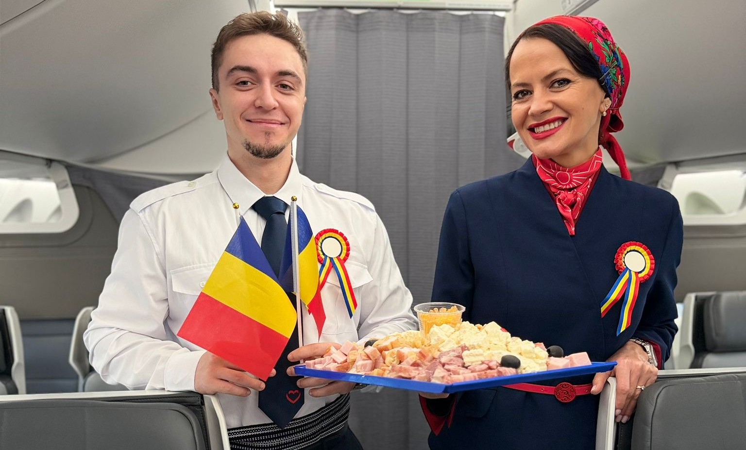 Pasagerii AnimaWings au sărbătorit Ziua Națională în zbor, cu meniuri tradiționale servite la 10.000 de metri altitudine