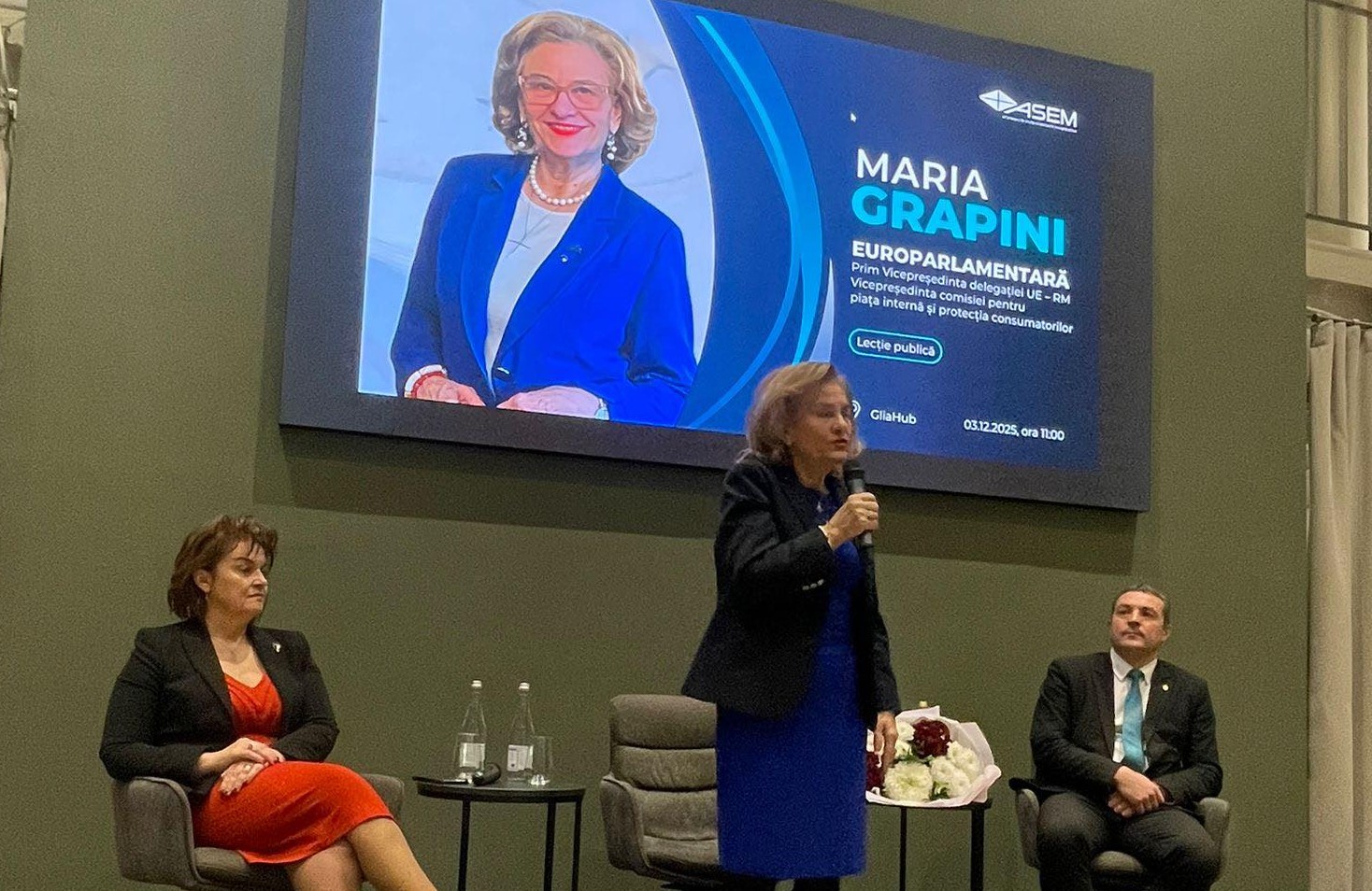 Europarlamentarul S&D, Maria Grapini, vicepreședinte al comisiei pentru piața internă și protecția consumatorilor din PE și prim-vicepreședinte al Delegației UE-Republica Moldova, a vizitat, miercuri, două universități prestigioase din Chișinău: Academia de Studii Economice din Moldova și Universitatea Pedagogică de Stat “Ion Creangă” din Chișinău.