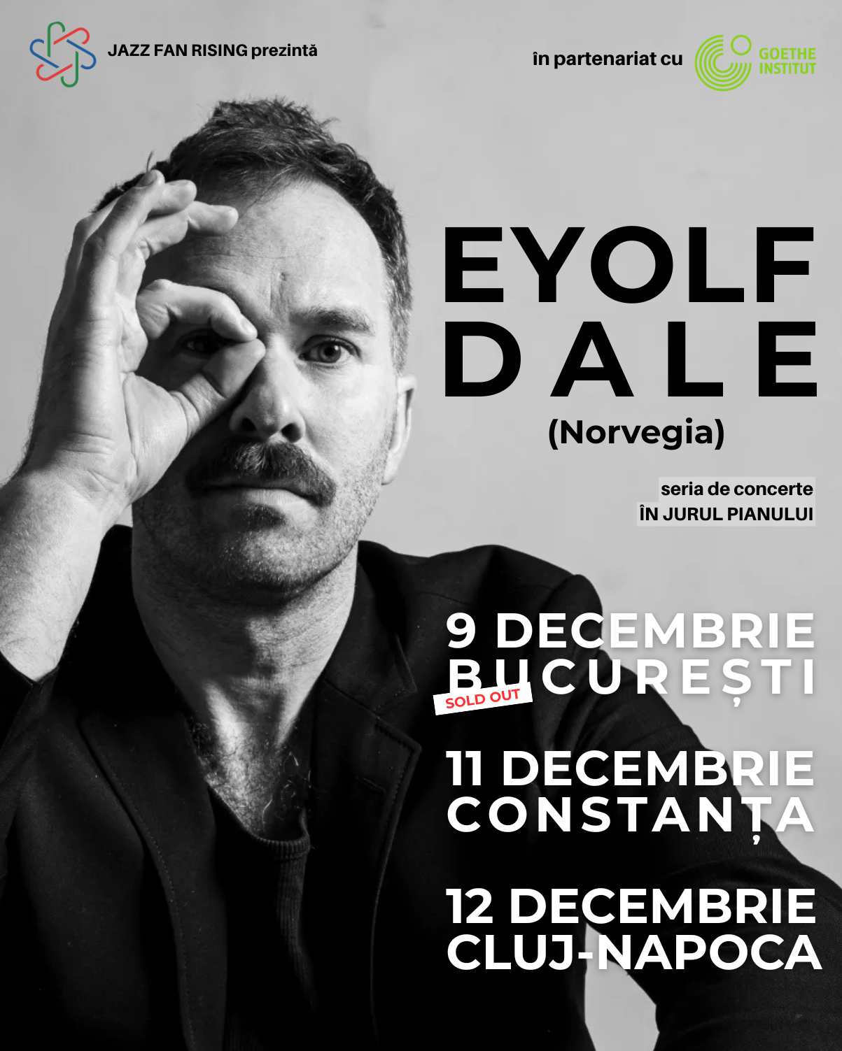 Pianistul și compozitorul norvegian Eyolf Dale va susține o serie de trei concerte în reprezentație unică în turneul organizat de Jazz Fan Rising, inițiativa privată a iubitorilor de jazz din România. Concertele vor avea loc la București – marți, 9 decembrie 2025, de la ora 19:00, în Pavilionul Goethe Institut (Dorobanților 32), la Constanța – joi, 11 decembrie 2025, de la ora 19:00, la Sala Prestige de la Continental Forum și la Cluj-Napoca – vineri, 12 decembrie, de la ora 19:00, la Sala Studio a Academiei Naționale de Muzică Gh. Dima (str. Hermann Oberth, 2).