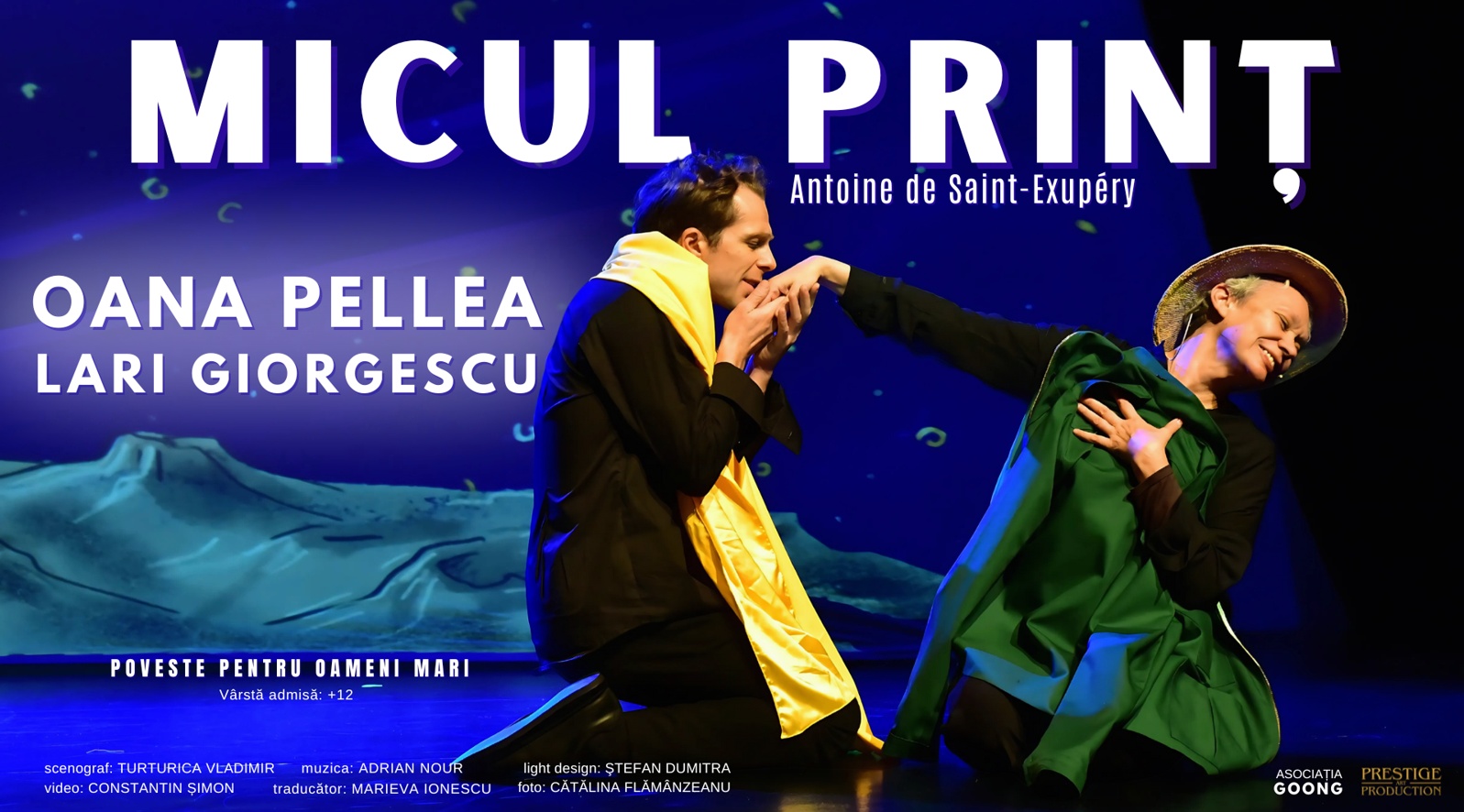 „Micul Prinț”, omagiu adus lui Antoine de Saint-Exupéry la 80 de ani de la dispariția sa, este un spectacol despre iubire, viață și redescoperirea esențialului, recomandat publicului de toate vârstele. Oana Pellea și Lari Giorgescu dau viață unei povești pline de sensibilitate, în care copilul din noi se întâlnește cu întrebările mari ale existenței. Scenografia semnată de Vladimir Turturică și muzica originală a lui Adrian Nour completează atmosfera poetică și emoționantă a spectacolului, conceput ca o creație colectivă.