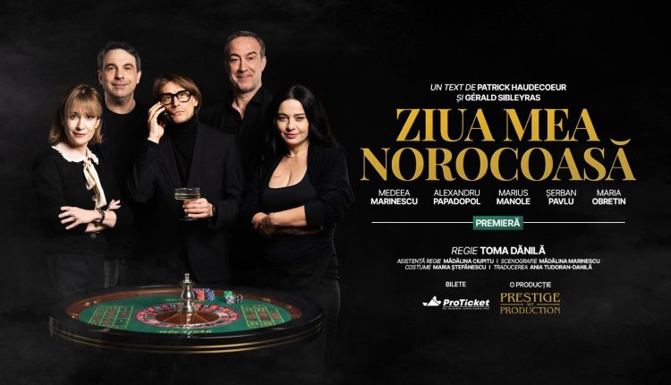 „Ziua mea norocoasă”, semnat de Patrick Haudecoeur și Gérald Sibleyras, abordează cu inteligență și umor tema alegerilor care ne pot schimba viața și rolul pe care norocul îl joacă în destinul fiecăruia. Succes confirmat pe scenele din Franța și dublu nominalizat la Premiile Molière 2025, spectacolul este adus în România într-o distribuție remarcabilă: Marius Manole, Medeea Marinescu, Alexandru Papadopol, Șerban Pavlu și Maria Obretin.
