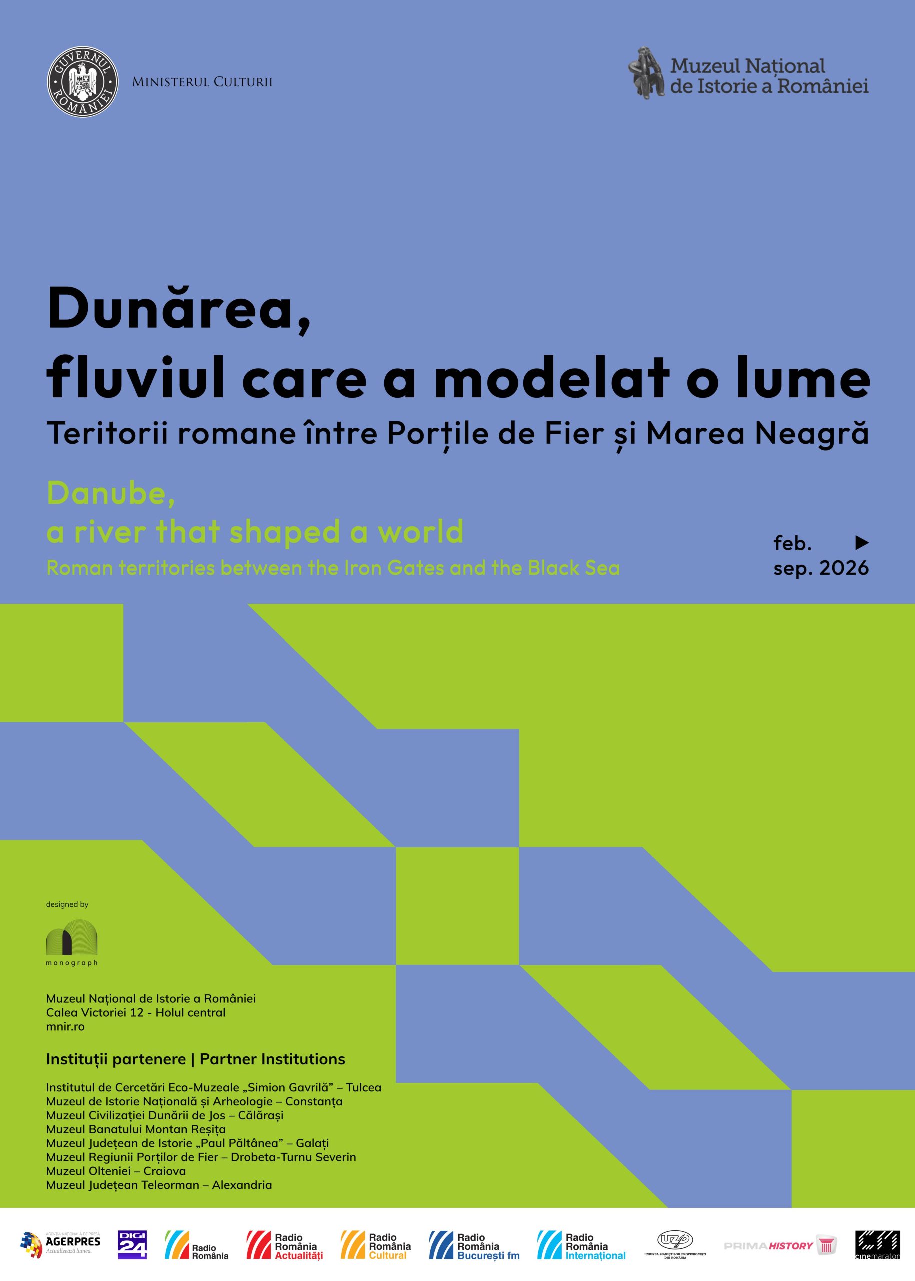 Muzeul Național de Istorie a României (MNIR) în parteneriat cu Institutul de Cercetări Eco-Muzeale „Simion Gavrilă” – Tulcea (ICEM), Muzeul de Istorie Națională și Arheologie – Constanța (MINAC), Muzeul Civilizației Dunării de Jos – Călărași (MCDJ), Muzeul Banatului Montan – Reșița (MBM), Muzeul Județean de Istorie „Paul Păltânea” – Galați (MJIPP), Muzeul Regiunii Porților de Fier – Drobeta-Turnu Severin (MRPF), Muzeul Olteniei – Craiova (MOC), Muzeul Județean Teleorman – Alexandria (MJTR), invită publicul să descopere o nouă expoziție dedicată Dunării romane, axă strategică, economică și culturală a Imperiului Roman: „Dunărea, fluviul care a modelat o lume. Teritorii romane între Porțile de Fier și Marea Neagră”.