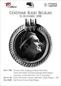 Ora 17.00: Proiecție video-mapping pe fațada Sălii Studio; Foaier Sala Studio: Vernisajul expoziției Radu Beligan (expoziția va fi deschisă între 14 și 21 decembrie).