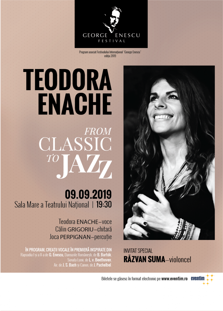 Festivalul Internațional George Enescu anunță că ediția 2019 va include ca proiect asociat și un concert inedit – From Classic to Jazz, creat și interpretat de Teodora Enache. În premieră, Rapsodia I și Rapsodia a II-a, de George Enescu vor fi interpretate vocal în cheie jazz. Spectacolul From Classic to Jazz va putea fi vizionat în cadrul Festivalului Internațional George Enescu 2019, în reprezentație unică, pe data de 9 septembrie, de la ora 19.30, la Teatrul Național din București.