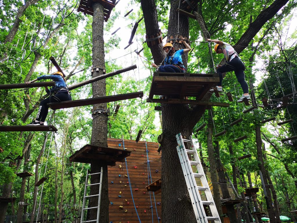 Parcul oferă oaspeților, de la mic la mare, o zi în mijlocul naturii, cu multă adrenalină datorată celor 14 trasee prin copaci, circuitelor de tiroliane, escape room-ului, tirului cu arcul și airsoft, închirierii bicicletelor pentru traseele prin pădure, dragonului galben (traseu la sol fără echipament), mini tirolienei cu scaun, trambulinei. Nu am auzit niciodată atât de multe chiote de bucurie ale copiilor care făceau diferite trasee, în funcție de gradul de dificultate (galben, orange, verde…), dar și de încurajări ale părinților și bunicilor rămași la sol! Un parc superb, animat, pe care nu ai dreptul să îl ratezi!