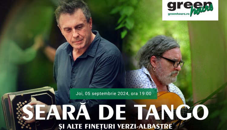 Joi, 5 septembrie 2024, ora 19:00, terasa verde de la Green Hours se învăluie în parfum de mare și de soare și devine scena unui concert de tango susținut de Alexandru Nucă (bandoneon) și Maxim Belciug (chitară). Cei doi artiști vor aduce în cea mai boemă grădină din București acorduri pasionale de tango, milonga, valsuri cu gust de visuri pierdute și alte finețuri verzi-albastre, senzuale ori sărate, ca-n versul lui Borges: “corzi aspre de chitară laborioasă, / urzind într-o milongă furtunoasă / și chef, și inocență, și sfidare.”